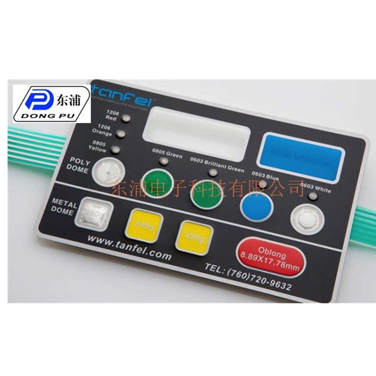 東莞東浦薄膜開(kāi)關(guān)是集按鍵功能、指示元件、儀器面板為一體的一個(gè)人機(jī)界面。主要是由面板、上線電路、隔離層、下電路四部分組成。按下薄膜開(kāi)關(guān),上電路的觸點(diǎn)向下變形,與下電路的極板接觸導(dǎo)通,手指松開(kāi)后,上電路觸點(diǎn)反彈回來(lái),電路斷開(kāi),回路觸發(fā)一個(gè)信號(hào)。薄膜開(kāi)關(guān)結(jié)構(gòu)嚴(yán)謹(jǐn),外形美觀,密封性好。具有防潮濕,使用壽命長(zhǎng)等特點(diǎn)。廣泛應(yīng)用于電子通訊、電子測(cè)量的儀器,工業(yè)控制,醫(yī)療設(shè)備,汽車工業(yè),智能玩具,家用電器等領(lǐng)域