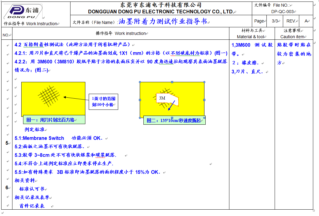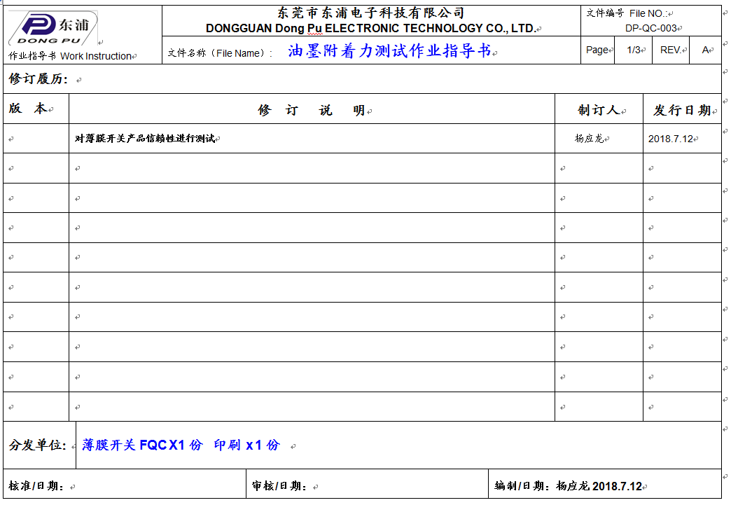 怎樣測(cè)試薄膜開(kāi)關(guān)附著力及測(cè)試方式 download: 薄膜開(kāi)關(guān)附著力測(cè)試作業(yè)指導(dǎo)書DP-QC-003.doc [ 返回列表 ] 上一篇:TPU薄膜按鍵及TPU的運(yùn)用 下一篇: 什么是薄膜開(kāi)關(guān)